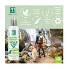 Champú en seco para perros a base de aceite de argán, avena, manzanilla y aloe vera. El aceite de argán tiene propiedades nutritivas para la piel, el aloe vera hidrata y actúa sobre las pieles sensibles y la avena, proporciona brillo, elasticidad y suavidad al pelaje.