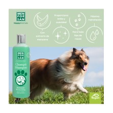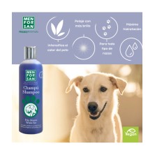 Proporciona brillo, limpia, desodoriza y nutre el pelaje sin necesidad de usar agua ni proceso de aclarado.